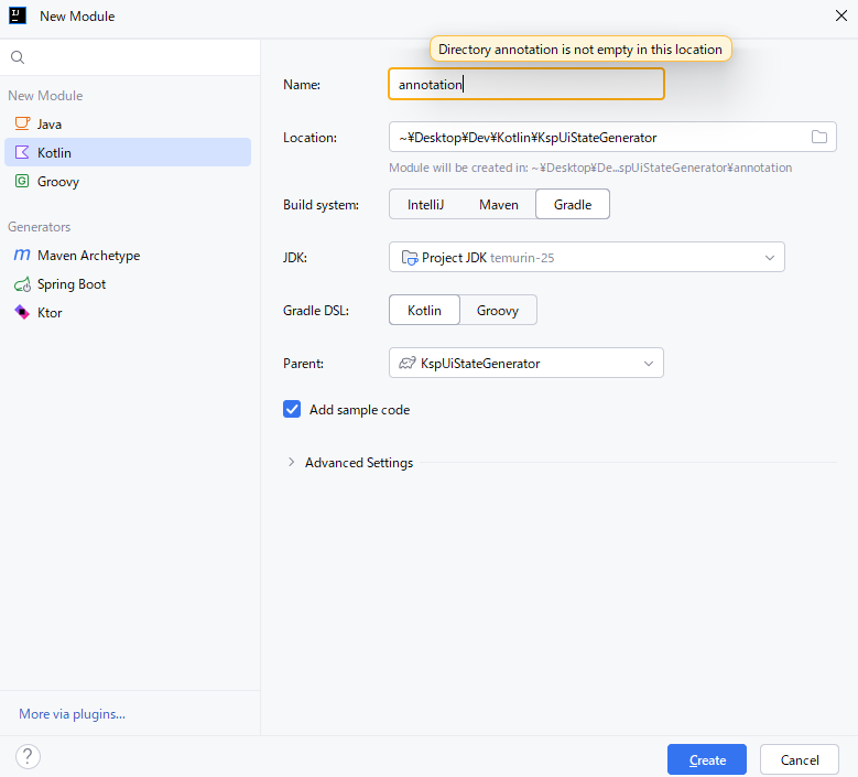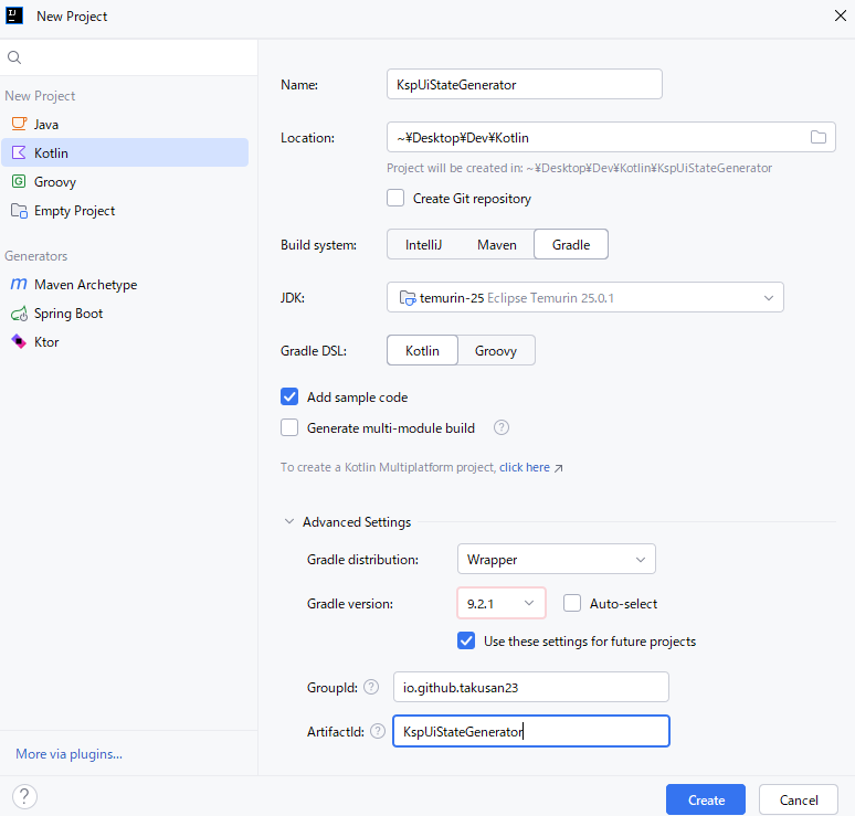 }KSP作るのにIDEAを使います。Android Studioでできるかは分からないです